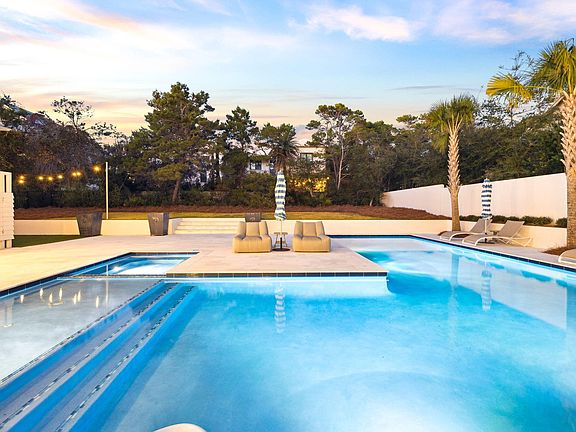 Set on one of the most expansive homesites on the east end of 30A, this gated compound offers rare opportunity for future expansion and development. The front portion of the property allows for the addition of a guest home, carriage house, or multiple garages, while the area beyond the pool can accommodate a pool house and/or a pickleball court.