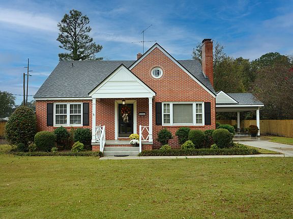 Step into this mid-century red brick 3 bedrm, 1.5 bath home, full of original charm and cozy warmth. Beautiful original, natural aged hardwood floors flow throughout main areas and bedrooms. The 'must have' sunroom feels open and uplifting, as if the room itself is breathing in the daylight- the entire space feels warm and alive-overlooking private backyard. In the kitchen, you will find charm and orginality, this space showcases true wood cabinetry-retaining its authenitc character from the era. The black-and-white checkered flooring adds a playful vintage vib-you will love it! Just off to the side, a cozy eat-in breakfast area offers the perfect spot for morning coffee & quick meals. Overhead in the breakfast area and the separate dining room, the orginal stained-glass light fixtures hang casting soft and colorful glows across the rooms adding a touch of nostalgia. A Roomy separate dining room conveintantly flows to a LARGE family room. This spacious family room holds an abundance of natural light, and a cozy gas-log fireplace. TONS OF STORAGE can be found above with a full floored attic. The classic exterior shows off authentic style and lasting quality- A true timeless charmer! A GRAND oversized two-car carport is an everyday luxury and a perfect place to enjoy slow afternoons with a glass of sweet tea. A large, level backyard makes the perfect space for gardening, kids or four-legged friends. *12x10 storage building* GREAT LOCATION with an easy commute to Fayetteville, Raleigh, Goldsboro and Wilmington. This home captures the essence of comfortable, and classic living that never goes out of style! Don't miss out on this amazing opportunity-