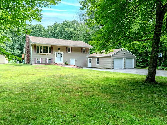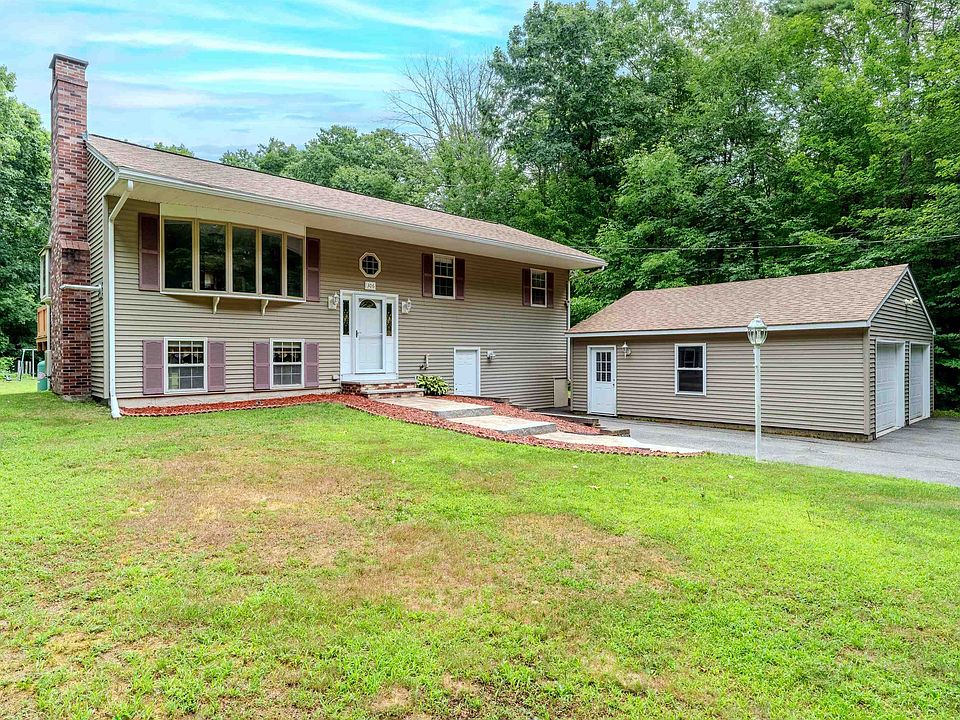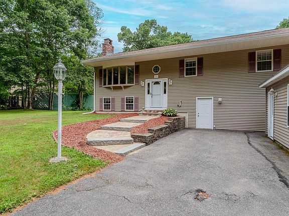 This raised ranch sits back from the road with a detached two car garage. The home has been impeccably maintained by the current owners. The updated eat-in kitchen is adorned with stainless steel appliances, granite countertops, breakfast bar, and plenty of storage. The dining area has glass sliders leading out to the freshly painted back deck. The expansive living room is bright and airy, with beautifully maintained hardwood floors, and oversized bay windows. Down the hall are the three well proportioned bedrooms, each with generous closet space. The primary bedroom also features an en-suite bathroom, with standup shower. Another full bath rounds out the first floor. The lower level offers plenty of additional living space. A secondary living room has a grand fireplace, and sliders leading directly to the back yard. A designated laundry room rounds out the finished area. The large unfinished room provides plenty of extra storage, with enough space for a workshop, office, or home gym. The exterior of the home boasts a large yard, storage shed, garden, and detached two car gar garage. The home is also wired wired for a backup generator. Its proximity to shopping, amenities, outdoor recreation and I-93 make this home a must see. Open house Sunday 7/28 from 12:00pm-1:30pm.