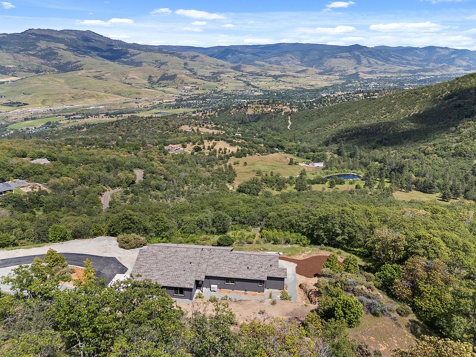 Luxury meets efficiency & privacy in this 2025 custom home, designed to capture truly stunning panoramic valley views. Earth Advantage Platinum certification guarantees a healthier & more comfortable living experience, provides peace of mind through the use of sustainable & durable products, and saves thousands. Set on a private 5-acre lot with ample parking. The breathtaking views are brought in through transom windows & sliding French doors in the vaulted great room, complete with a cozy electric fire feature. The kitchen is both stylish & functional, featuring a center island, walk-in pantry, textured quartz countertops, and artisan tile backsplash. White oak wood flooring throughout with tile in the bathrooms. Private well + holding tank & filtration. Paved drive to the house. Ready to be elevated with your vision for landscaping and outdoor living. XL 2-car garage with workshop space. Only 10 minutes from downtown. Built by Suncrest Homes, trusted builder of over 450 local homes.