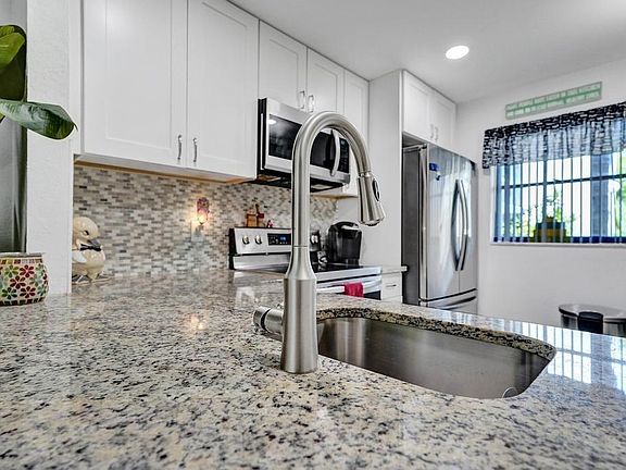 Remodeled in 2021, move-in ready. Ground floor unit offers easy access from parking lot to front door. Enclosed porch/Florida room adds space. Elegant 24" porcelain tile throughout. White Shaker 42" kitchen cabinets and granite counter tops in the kitchen. Pantry and additional cabinets were added to make this kitchen second to none. 55+ community with amazing clubhouse and amenities.