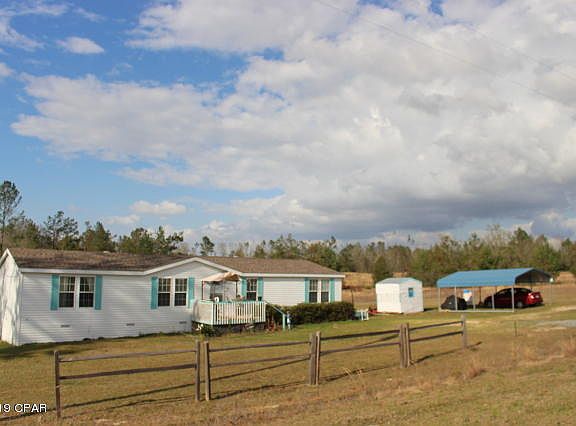 This updated Double Wide Mobile Home is in Move In Ready condition. The hurricane Michael repairs have been completed. New roof in 2019. New wood laminate flooring in family room. The water heater and plumbing have been replaced with new parts. The septic tank has been pumped out and was inspected in April of 2017. This home is located on a paved road and is just minutes to I-10 & Hwy 231. Split bedroom floor plan. Open Kitchen, Dining, and Family room. Separate formal living room. Master Bedroom and bath are both large in size. Master bath has a garden tub & separate shower, double vanity sinks and large walk in closet. Back deck has plenty of room for entertaining and has a peaceful view. The carport & two sheds will convey with sale. Property was surveyed when purchased.