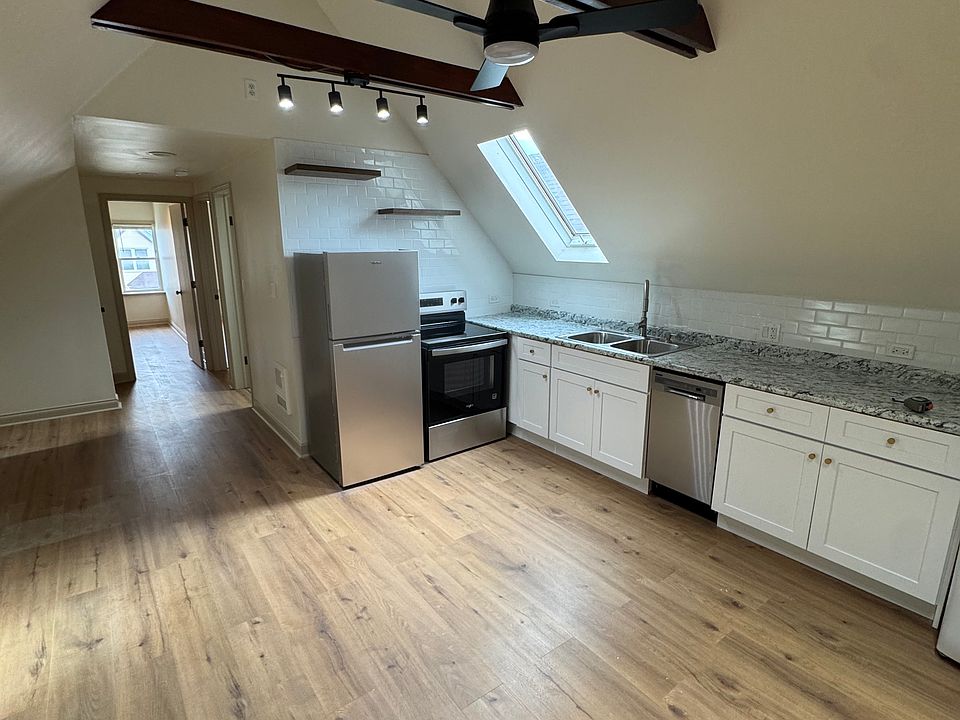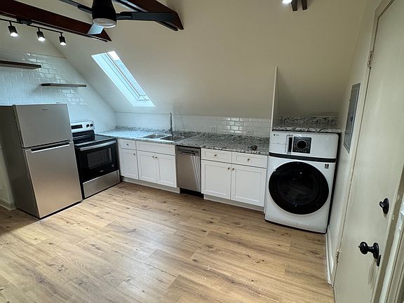 Modern appliancesUpdated bathroomGreat natural lightIn-unit washer and dryerTop-floor unitFully renovated attic-style apartmentBright layout