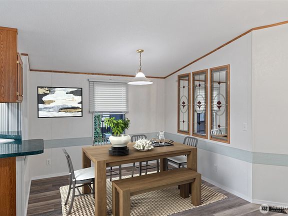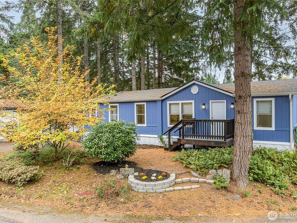 Desirable all-age park within the Central Kitsap School District. This home was built in 1998 and has a new roof w/sheathing, decks and exterior paint. The open floor plan features new LVP flooring, kitchen with new stainless appliances including an air fryer range, ample cabinetry & counter space and breakfast nook. The split layout includes a spacious primary suite with walk-in closet, bath with soaking tub, and separate shower, plus two additional bedrooms and a bath on the other end. Located on a corner lot with parking on both sides. Kariotis, an all-age park with a clubhouse and playground. Conveniently located close to shopping, bus line, bases and 5 miles to the ferry.