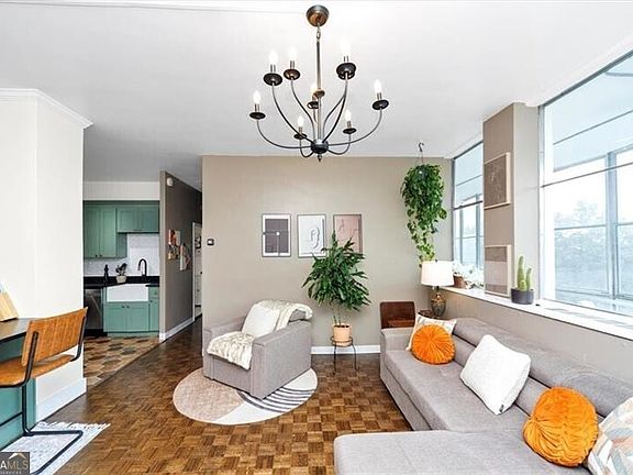Discover this beautifully updated $40k in renovations Buckhead condo in a classic mid-century building, boasting a spacious 30-foot open-air sunroom balcony perfect for relaxing or entertaining. Inside, enjoy a gourmet kitchen, a primary bedroom with a walk-in closet and balcony access, a secondary bedroom, a dedicated office nook, and a flat HOA fee covering unlimited utilities and all building maintenance. Residents benefit from a full suite of amenities, including a saltwater pool, 24/7 controlled access, and highly rated schools (7-9). This gem offers serene, private living with effortless access to Buckhead Village Phipps Plaza & Lenox Square for premier shopping, dining, and entertainment-just a short stroll away! The kitchen shines with top-of-the-line stainless steel appliances, sage green shaker-style cabinets, honed premium granite countertops, a herringbone white tiled backsplash, a matte black and copper-accented faucet, an oversized sink, corner shelves for ample storage, and a generously sized pantry. Rich dark walnut stained hardwood floors flow throughout, complemented by wall-to-wall windows that flood the home with natural light year-round. The open-concept layout seamlessly connects the kitchen to a sun-drenched family room via wall-to-wall windows, while a hallway ensures privacy for the two spacious bedrooms. The bathroom impresses with a large vanity, high-arc faucet, expansive framed mirror, space-saving ventless washer-dryer, and elegant white tiled floors. Step outside to one of the city's largest communal green spaces-over four acres of lush landscaped grounds with mature trees, ideal for summer barbecues and poolside social gatherings. For active lifestyles, nearby attractions include Frankie Allen Park, Chastain Park, Bobby Jones Golf Course, and the Atlanta BeltLine, offering fields, tennis courts, pools, and golf. Explore the scenic Swan House and Gardens, savor upscale experiences in Buckhead Village, or shop conveniently at Whole Foods, Publix, or Trader Joe's, with charming coffee shops nearby. Enjoy abundant parking, an oversized storage unit. Embrace hassle-free, luxurious living tailored for you and your family for years!