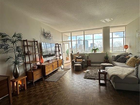 MID-CENTURY modern Buckhead Condo with amazing views from every room of Skyline! PRICED TO SELL!! Walk to all Buckhead has to offer at this amazing price! Two Bedroom with One Bath Open Floor Plan features Hardwood Floors throughout, neutral paint and windows provide great natural light. The two exterior doors to the screened patio have been replaced with glass doors for an enhanced view and patio runs full length of unit. The HOA fee covers all utilities except Cable and Internet, unit has a deeded storage space (largest available) across the hall. The Community offers Laundry facilities with new machines, gym, library/common room, pool, gazebo and grill area. This is a prime location yet tucked quietly away from Peachtree in a secure access building. Use a Parking Form provided inside the first entry and put on dash available so you won't be booted. Building provides an onsite maintenance team. A special secure pedestrian access to Saint Regis Drive, Whole Foods and all the dining and night life Buckhead has to offer. This is the most affordable housing for Buckhead living so don't miss out on seeing this unit!