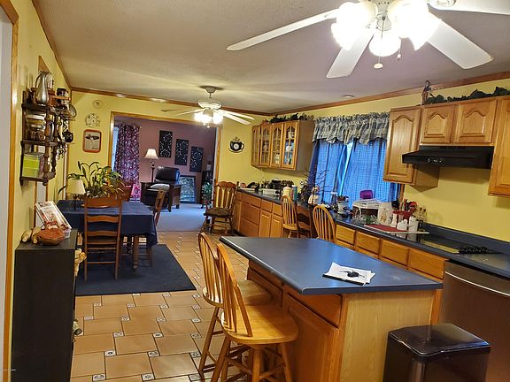 This newly listed home offer 3 bdrm 1 bath over 1400 sqft of living space this home is on a slab so no stairs, great home if you enjoy the outdoors and privacy home sits on 5 acres with woods and hills, there a large carport and 2 garage one side is set up for a office2 storage sheds, fenced in area also, home offer open kitchen and dinning room , large living room with 2 set of glass sliders one view of front and other set over ;looks the rear, patio in back. home has new septic and well inlast 2 years and roof about 2014, Home is on a dead end road.