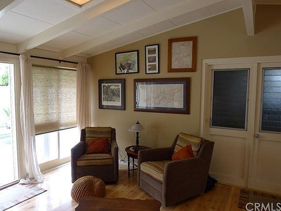 MUST SEE! This stunning Cliff May Rancho pool home has tons of beautiful upgrades, an open floor plan, lots of light and is meticulously maintained! Gorgeous Pebble Tec pool remodel looks like a tropical paradise! This turn key home has newer roof, freshly painted interior, laminate wood floors, new carpet, granite countertops in kitchen, newer stainless steel dishwasher, cooktop and refrigerator, butcher block island, wine rack, new countertops and cabinets in livingroom with built-in wine cooler, brick fireplace, 2 spacious bedrooms with huge closets, recently remodeled baths with heated floors, skylights, new solar panels on roof, reverse osmosis, newer furnace, newer tankless water heater, solar pool heater, new pool pump, super clean 2-car garage. Quiet interior location in highly sought after neighborhood close to El Dorado Park!