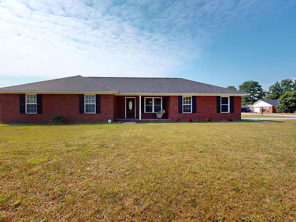THREE full bathrooms in this brick, three bedroom home with a side entrance two car garage. This home sets on a large, .49, corner lot and has been completely updated with new HVAC, new Roof, all new flooring, new paint, new lights, new toilets, new faucets, new granite, and new stainless appliances. Greet your guests from the nice covered front porch into the foyer with nice, popular, Luxury Vinyl Plank flooring that flows into the great room, dining room, kitchen, hallway, utility room and baths. Great room has a vaulted ceiling and plenty of room for entertainment. The dining room is off of the foyer and connects to the kitchen. The kitchen has white cabinetry, new granite and new stainless appliances to include side by side refrigerator, glass top stove and dishwasher. The master has a walk in closet, a linen closet and a private bath with a large vanity with dual sinks and a tub/shower combination. One of the two hall bathrooms has a walk in shower. The kitchen has a sliding door out to the covered 11 x 12 porch, perfect for BBQs and entertainment. Country feeling but so close to shopping, food and restaurants. Enjoy home ownership.