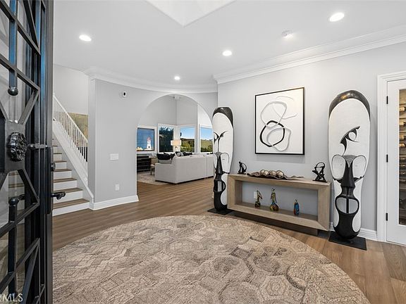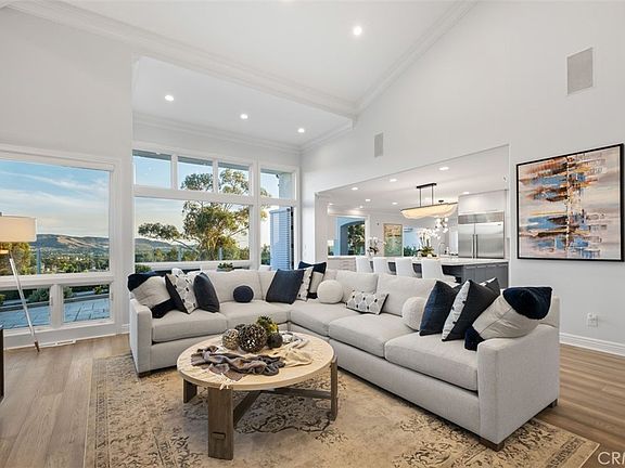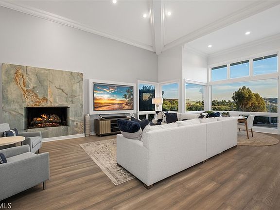 Welcome to this outstanding totally remodeled custom built residence located on the 8th fairway of Marbella Estates & Country Club on a single loaded street with fabulous panoramic views of golfcourse,hills, gorgeous sunsets and peak ocean views. Designed to take full advantage of indoor-outdoor living private entry courtyard with waterfall a great place for entertaining. Enter through elegant foyer with an amazing lighting fixture, a huge great room comes to view with two story high beamed ceilings, gorgeous fireplace, beautiful large picture windows to allow sun light to pour in. Stunningly designed kitchen with oversized island done in Quarts, newest in cabinetery designs, wood flooring and awesome lighting fixtures all throughout. Quartz breakfast bar, gorgeous picture window, top of the line appliances like Subzero, Wolf oven & gas range and walk-in pantry. Around chilled wine cellar to dining and living rooms with a gorgeous fireplace, 3 sets of French doors open to front courtyard and beautiful covered patio and lanscaped yard designed to take advantage of great golf course views and colorful sunsets. A beautifully designed staircase all open overlooking main level takes you to private wing of primary suite with lots of lights and 3 sets of French doors & another amazing fireplace. A gorgeous primary bath with soaking tub, steam shower, large picture window and great number of closet with built-ins and 2nd set of washer & dryer. Walk out from south facing french doors in retreat area to covered balcony to relax and enjoy morning coffeet & peaceful evening sunset views. Elegant second guest suite on this level features great built-ins, French doors and balcony. Great circular driveway, huge 3 car garages totally finished with lots of cabinets, epoxy flooring, new openners. So many smart details like full security lights, lots of new speaker, new window shades and fireplaces all operating on remotes complets this super smart home. located in 24 hour guard gated Marbella a private Country Club offers 18 hole golf course, clubhouse, pool, tennis, fitness center and dining. Located close to award winning private schools, shopping, fine restaurants with easy access to 5 freeway, Harbor and pristine beaches. Fashion Island, John Wayne Airport are 20 to 35 minutes ride.