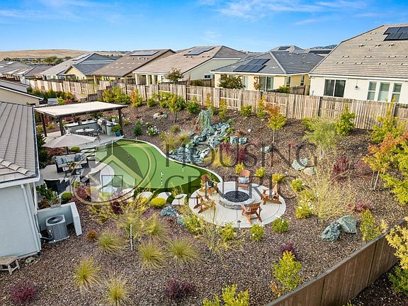 - Exterior features: Barbecue, Corner Lot, Electric Vehicle Charging Station, Fire Pit, Garden, HUGE, Private Backyard, Heating system: Forced Air, No Utilities included in rent, Owner Maintained Landscape, Plantation Shutters Throughout, Putting Green, SOLAR HOME - Lower Electric Bill, Single Story, Soaring Ceilings, Tool Shed, Top of the Line Appliances, Water Feature