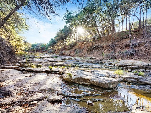 Solid rock bottom creekMature oak treesAg exempt propertyOpen range livestockAbundant wildlifePalo pinto mountainsImproved trails