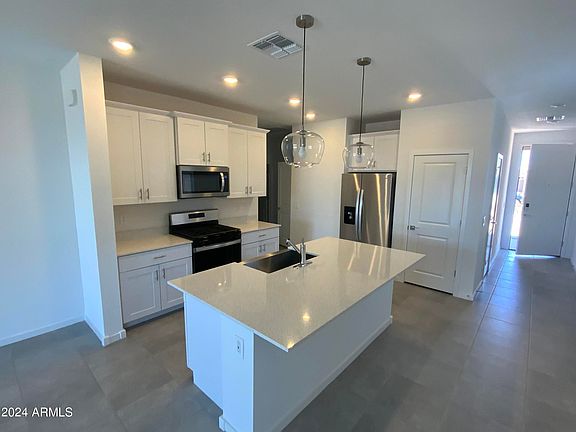 Newer Energy efficient home in gated community Bella Vista Trails! 3-bedroom 2 bath 2 car garage. Beautiful kitchen with stainless appliances,large kitchen island,annd quartz countertops .inside washer and dryer. You will enjoy easy access to Phoenix-Mesa Gateway Airport and local restaurants. This family-friendly community will feature an amenity center,playground ,community pool, pickle ball and sport court.