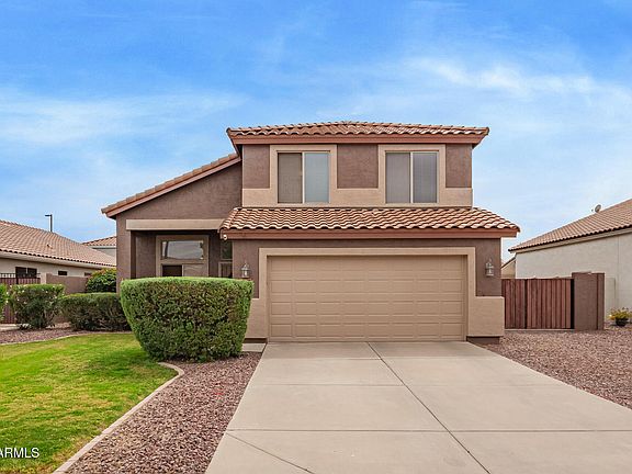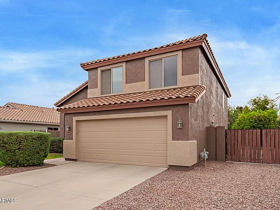Located in a prime neighborhood, this gem offers spacious living w/ 4bds + 3ba, including a resort-style backyard w/ a refreshing pool! The kitchen boasts upgraded cabinets, granite countertops, breakfast bar/island, stainless steel appliances, & pantry. Plus, the refrigerator is included! The main level features a separate living & family rm, bedroom, full bath, & laundry rm w/ washer & dryer included! Upstairs, you'll find the primary bedroom along w/ two additional bedrooms. The backyard is an entertainer's dream w/ a large pool & covered patio, perfect for relaxing &/or hosting guests. There's also a charming side yard ideal for a garden, adding even more versatility & beauty to the space. Around the corner awaits a large park w/ a children's play area. Great for those weekend flag football & kickball games! W/ easy access to the 60 Freeway, nearby restaurants, the Village at Dana Park's upscale shopping & dining, & Banner Gateway Hospital, this home offers both comfort & convenience. Don't miss out on this opportunity to make this home yours!