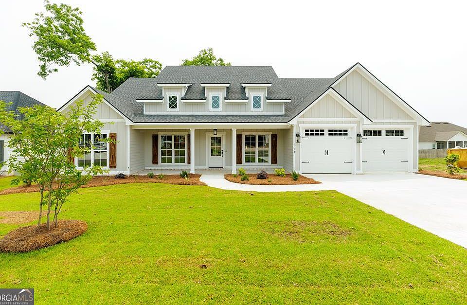 New Construction | 4BR/3BA | GROVE POINTE S/D, Hahira, GA. Built by La Catalina Properties. Meticulously crafted for both style and functionality, this brand-new 4-bedroom, 3-bath home in Lake Park offers thoughtful design and premium features throughout. Includes spray foam wall insulation for enhanced energy efficiency and comes with a One-Year Builder's Home Warranty for peace of mind. The spacious living room features a vaulted ceiling with exposed wood beams. The kitchen is a chef's dream - complete with custom cabinetry, a large center island, and granite countertops. The primary suite offers a spacious walk-in closet, garden tub, and separate walk-in shower. One additional bedroom and full bath are located on the primary side of the home, while two more bedrooms and a third full bath are on the opposite side - ideal for guests or family. This home blends craftsmanship, efficiency, and comfort - a perfect fit for modern living in Hahira.