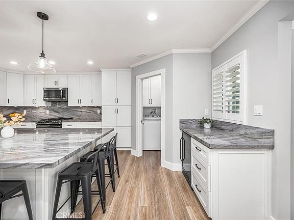 Welcome to this one of a kind single level home located in one of the most desirable areas of Long Beach! This Custom Home is completely remodeled with high end laminate flooring and quiet pad throughout, recessed lighting with LED lights on dimmers, new dual pane windows, all new doors, plantation shutters, interior laundry room, ceiling fans, crown molding, 5” baseboards, new HVAC with Nest thermostat, PEX plumbing and more! Upon entry you are welcomed into the Designer Kitchen that has been expanded and was taken down to the studs to create a beautiful family space for all of your wants and needs. Note the Quartzite countertops and backsplash with the large kitchen island, abundance of custom cabinetry with soft close features and custom hardware, pantry with pull out features and under mount lighting. This home comes with top of the line appliances to include a gas stove, double oven, dishwasher, microwave and mini beverage fridge. The kitchen opens to the full size Dining Room with beautiful shiplap and the spacious Living Room with brick detailed fireplace giving this home a true Great Room for all your gatherings. Enjoy the true Primary Bedroom with an oversized en suite Bathroom including custom rain shower, soaking bathtub, walk-in closet and Quartzite topped double sink vanity. The bedroom also has an additional secondary closet with mirrored doors. There are 2 additional bedrooms to compliment the home, each with neutral paint, closet organizers, plantation shutters and ceiling fans. The expanded full size hall bathroom includes double sinks and an abundance of storage with organizers for additional daily convenience. The backyard has the perfect ratio of hardscape for sitting areas as well as a large grassy area with a new irrigation system and hand picked trees and plants creating a perfect environment for entertaining. The home is completed with the garage in the back and an extra long driveway, new side gate, new eaves, newly painted exterior and new shutters. This home truly has so much to offer and you have to see it in person to appreciate its beauty and functionality. The home is walking distance to the El Dorado Park, close to all major freeways, shopping, dining and entertainment. DON’T MISS OUT!!