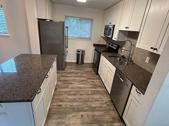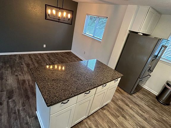Outstanding home with recent quality renovations to include new roof, windows, cabinets, counters, under counter lighting, tile backsplash, paint, carpet, laminate flooring, lights, and new dishwasher. Primary bedroom is gigantic and used to be 2 bedrooms and now made into one. 2 bedrooms on top floor, 2 bedrooms on bottom floor, one does not have closet and would work great as an office space. Gorgeous Jack and Jill bath between primary and hallway. Large flex room down with washer and dryer in closet has the sliding doors to fully fenced in yard. additional off street parking spot offside end of drive at gate to yard. "Not to be used as driveway, only as storage for a camper or car." Gas heat. Tenant must allow for auto deduct from checking for rent.