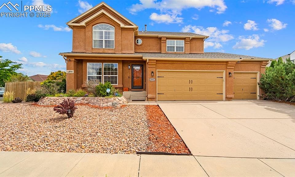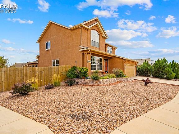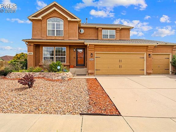 Phenomenal 5-bedroom 3.5 bath 3 car home located in well maintain Soaring Eagles. Upon entering be greeted by Formal Living with columns and Formal Dining room, large and functional kitchen with pantry with some new stainless-steel appliances with eat in dining, flows to main level family room with a gas fireplace leading to study with French doors and built in shelving, powder bath and 1st laundry room with sink, huge backyard ready for entertaining or relaxing. The upper-level host an Enormous Primary suite perfect Pikes Peak views with 5-piece bath and large walk-in closet with, oversized linen closet with 3 more large bedrooms all with great closet spaces and 2nd bathroom with double sinks and sky light. The basement is prewired for home theater this area prime for multi spaces with fully functional wet bar, second laundry room 3rd full bath and 5th bedroom with vast walk-in closet this home is ready for you, come see - Fall in Love and say YES TO THE ADRRESS!