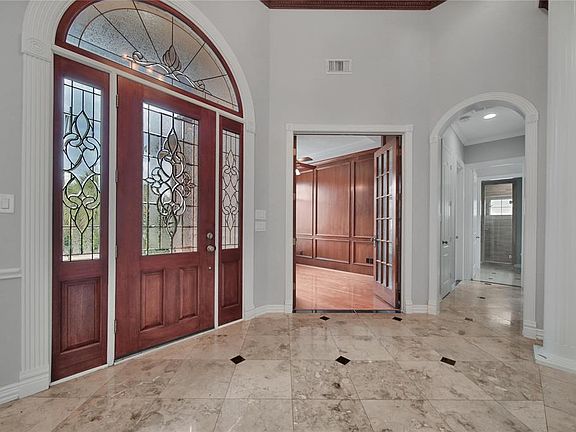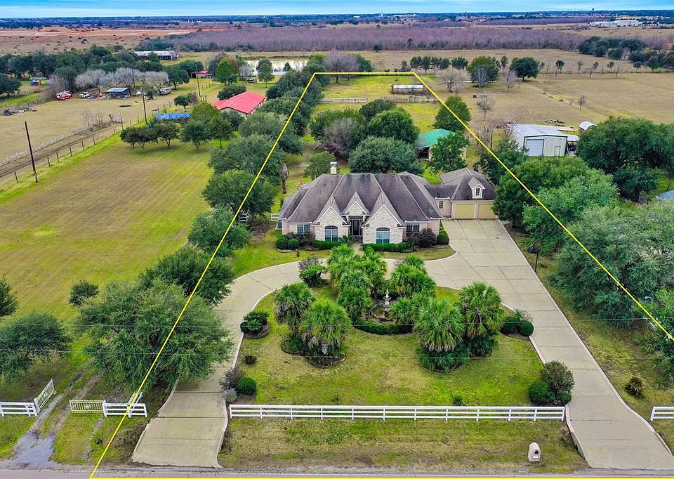 NEW PRICE!!! Stunning single-story home nestled on 3 acres of lush, mature trees. The fully fenced, cross-fenced property features two separate pastures, a barn, and ample space for your animals. The beautifully landscaped circle driveway provides plenty of parking and curb appeal. Step inside to an impressive grand entrance with elegant marble flooring. The home offers a private office with built-in cabinetry, perfect for working from home and two-family areas. The island kitchen and dining are a chef's dream, offering abundant storage, custom-built cabinetry, stainless steel appliances, a built-in refrigerator, breakfast bar, and pantry - ideal for family meals and entertaining. Step outside to a large, covered patio, perfect for outdoor gatherings and relaxation. Guest home with private entrance and an additional building that can be finished into a second home, barn or workshop with its own bathroom. Low taxes-NO HOA add to the appeal of this exceptional property. New Roof - 2025
