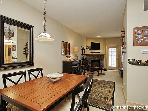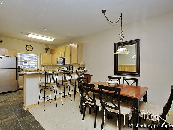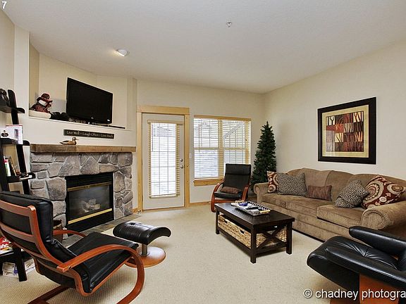 Upscale never rented/original owner condo w/model finishes, near pool/clubhouse/spas. Pine Package includes solid pine doors, molding, trim & wainscoting. Master suite w/fireplace. Travertine marble floors in upper baths w/tile counters & backsplash. Gourmet granite gas kitchen, eating bar & stainless appliances & slate tile floor. Great room with fireplace & slate hearth & balcony access. Guest room adjacent 2nd bath.