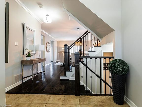 Magical & sleek in upscale Bronte Creek! This beautifully updated Branthaven home with professionally finished basement is looking for a new family who wants a quiet location close to nature & amenities. Situated on a quiet, family-friendly street close to schools, parks, trails & the new hospital, yet only 5-minutes to highways for commuters. The pie-shaped lot gives you an extra-wide rear yard with a patterned concrete patio, sunshine all day & room for a pool. Recent updates include new roof shingles (2018), an impressive new staircase & new blinds (2019), a custom closet organizer in the primary bedroom, all bathrooms updated, kitchen updated, LED light fixtures, & chandeliers, all done in the last 2-3 years. Entertain in the spacious open-concept living & dining room featuring a gas fireplace, hardwood underfoot & large windows. The updated eat-in kitchen offers professionally re-finished shaker-style cabinetry, granite counters, a large island with breakfast bar, & a walkout to the patio. Conveniently located upstairs is the laundry room & an open-concept family room with dark laminate flooring & a boxed bay window with a bench seat. The master bedroom boasts a custom closet organizer & a lavish 4-piece ensuite bath with a soaker tub & glass shower. The lower level offers a recreation room with pot-lights, & a gas fireplace, an office niche, an updated 2-piece bathroom & a multipurpose /2nd laundry room. Gorgeous home and love the backyard! 24 hr irrevocable