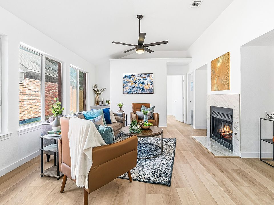 Welcome to this beautifully remodeled 3-bedroom, 2-bath home with a 2-car garage, perfectly located in a prime Grand Prairie neighborhood! Inside, you'll love the open layout, vaulted ceilings and modern designer touches throughout! Featuring, Fully updated bathrooms! New Quartz countertops throughout the home! New luxury vinyl plank flooring! New light fixtures! New paint inside! New stainless steel appliances! New rain gutters! New garage door opener! New water heater! Newer Roof! Newer HVAC! And much more! Located in a community with low HOA dues offering access to a clubhouse, pool, tennis court, and more! Conveniently located near I-20 and 161, just minutes away from Grand Prairie Premium Outlet Mall, Epic Waters Indoor Waterpark, Epic Central, IKEA, dining, and entertainment! Don't miss this move-in-ready home it’s the perfect combination of modern comfort and convenient location!