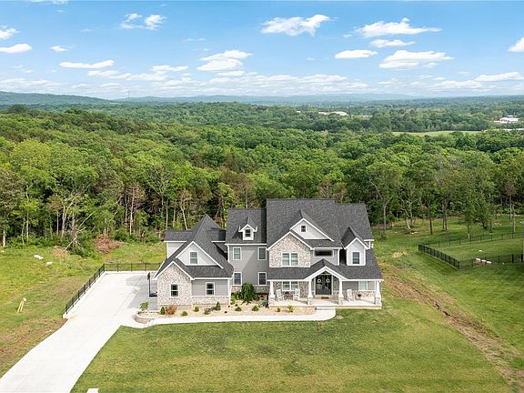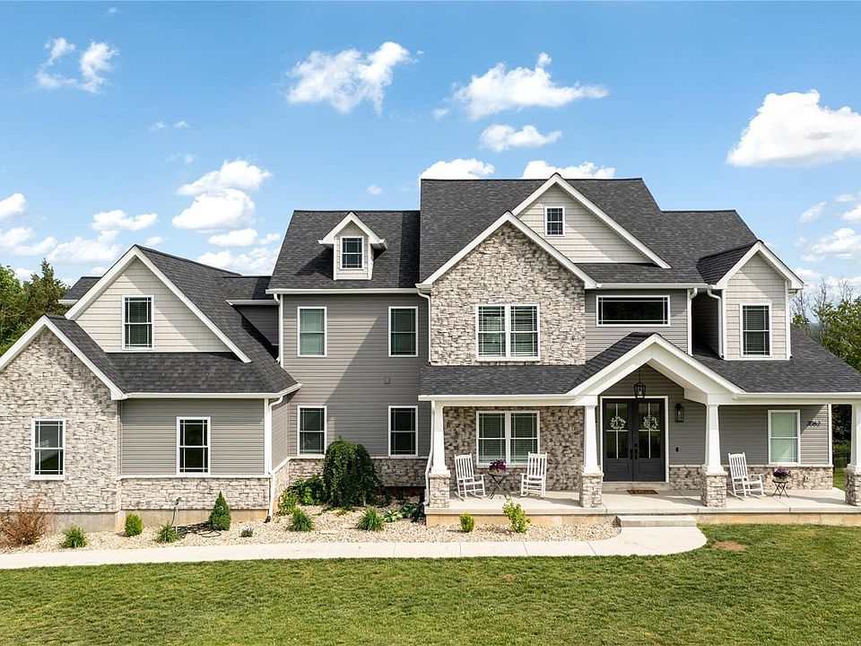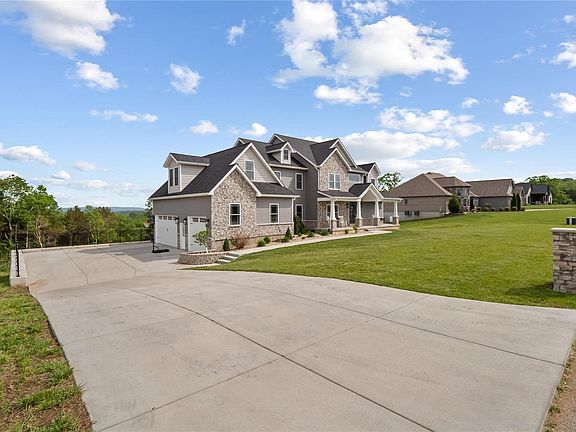 This custom built home sits on over 2 acres in the highly desired Stonebridge Place subdivision in the R7 School District. The large covered front porch & elegant curb appeal welcomes you home. Walk inside and notice the open floor plan with modern plank engineered laminate flooring throughout & tons of natural lighting. The 2 story great room with floor to ceiling stone fireplace is definitely an eye catcher. The kitchen is every chef's dream featuring a massive center island, custom white cabinetry with crown molding, quartz counters, large walk in pantry, and stainless appliances. Main floor master boasts a tray ceiling, fireplace, luxury bath, double vanity sinks, soaker tub & walk in shower, and huge walk in closet. Enjoy the covered deck off the great room. Main Floor Laundry. Upstairs you'll find 4 additional bedrooms, 2 full baths (1 jack/jill) & a large bonus room. The 3 car garage & walk out lower level gives you plenty of storage options.