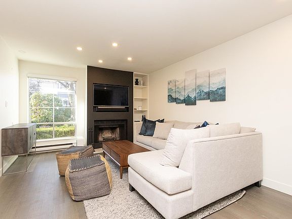 Beautifully updated 2-bedroom, 2-bathroom townhouse located in the heart of Fairview between Cambie and Oak Street. Renovated with updates completed in 2016 and 2019, this home features engineered German hardwood floors, granite countertops, updated kitchen appliances, a wood-burning fireplace, and custom closets. The layout is thoughtfully designed: one bedroom and one bathroom are conveniently located downstairs with a private patio at the back and a spacious front patio, while the second bedroom and bathroom are upstairs. Includes two secured, side-by-side underground parking stalls (14 and 15), and is part of a well-managed, proactive strata in a worry-free building. Excellent location close to VGH, shopping, restaurants, transit, and all amenities. Tenanted until November 1st.