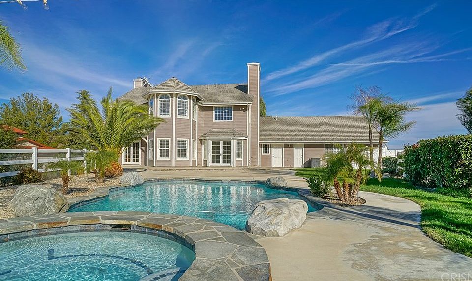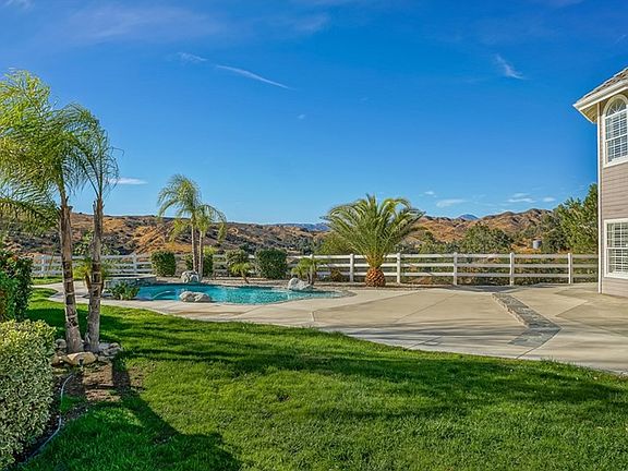VIEW! VIEW!! VIEW!!!A quiet country setting and amazing views highlight this beautiful 5 bedroom, 4 bath home in the hills of Castaic. The home perched near the top of a hill features spectacular forever views in the back and amazing views from the front. Enjoy your time in the pool, soak up the views from the spa or sit and relax on your master bedroom balcony while watching the sunset. It's all good here. The first floor features wood floors, bedroom, a large downstairs den/bedroom and 2 bathrooms, family room with fireplace, large formal living or dining room with fireplace, breakfast nook and a great kitchen. Making your way upstairs you will find 2 additional bedrooms both with wonderful views and one full bath with new counter tops, and a re-glazed tub/shower. The master bedroom has it's own fireplace, great views, walk-in closet and a master balcony with views. The master bathroom features dual sinks, jetted tub, separate shower and once again amazing views. All this plus shutters, ceiling fans, a huge laundry room with cabinets and a sink, 3 car direct access garage, fresh paint, new carpet (11/17) in the bedrooms and family room, new counters in 3 of the bathrooms and did I mention GREAT views!!!