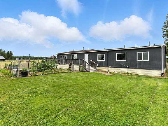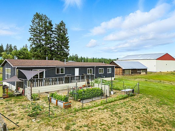 3 bed 2 bath manufactured home on 10 acres with unobstructed views of Mt Spokane. Complete with 40 X 60 Barn, partially fenced and cross-fenced. Two access points on opposite ends of the property for easy access. New 25+ gpm quality well, flooring, interior paint and trim. Enjoy your mornings in the garden or evenings with beautiful sunsets by the firepit. Just 10min outside of downtown Deer Park