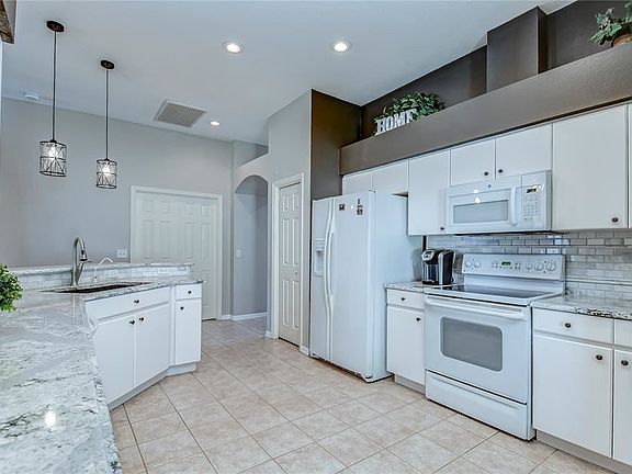 LIVE LUXURY - YOUR FINEST OPPORTUNITY IS NOW! Meticulously built Suarez Home with original owners! Located in the gated community of Ammanford in Meadow Pointe. This unique community is one loop behind the gate - very quiet - not a lot of traffic. The home has 4 bedrooms (3 bedrooms and an office) - a total of 2,080 sq. ft. BONUS! It is the only one of this model with a 3 car garage! Lush landscaping and curb appeal. AC 2019 - Exterior paint 2020. Updated flooring - wood look ceramic tile (2015) throughout the formal living areas and family room. Ceramic tile in kitchen and all bathrooms, and carpet in the bedrooms. Kitchen is a cooks delight with lots of counter space - updated white wood cabinets - quartz countertops (2015) - white appliances (dishwasher and microwave new). The soffit was removed to open the kitchen to the family room - decorative pendants added - work completed in 2021. Such a great home for entertaining with the open formal living and dining areas - and kitchen and family room - the party flows! Master bedroom is at the back of the home providing privacy. Completely update master bathroom in 2015 - dual sink vanity - custom cabinets with decorative mirrors and lighting - walk-in glass shower! Large walk-in closet. Two guest rooms and guest bathroom with tub/shower. The fourth room off the kitchen makes a great office or can be a bedroom. Indoor utility with new washer and dryer. The sliding glass doors from the family room take you to the covered patio and oversized back yard, completely fenced with vinyl white fence. A great place for the kids and animals to play, plus providing great privacy! Conveniently located to everything - Wiregrass Mall, Florida's largest premium outlet mall, AdventHealth medical facilities, restaurants galore! Easy access to I-75 getting you to I-4 and I-275 in minutes - so you can get to downtown Tampa, the Riverwalk, Armature Works, Tampa International Airport, International Mall, all the sports venues and more! Minutes to Orlando, Sarasota, and the sandy white beaches of the gulf coast! A must see home.