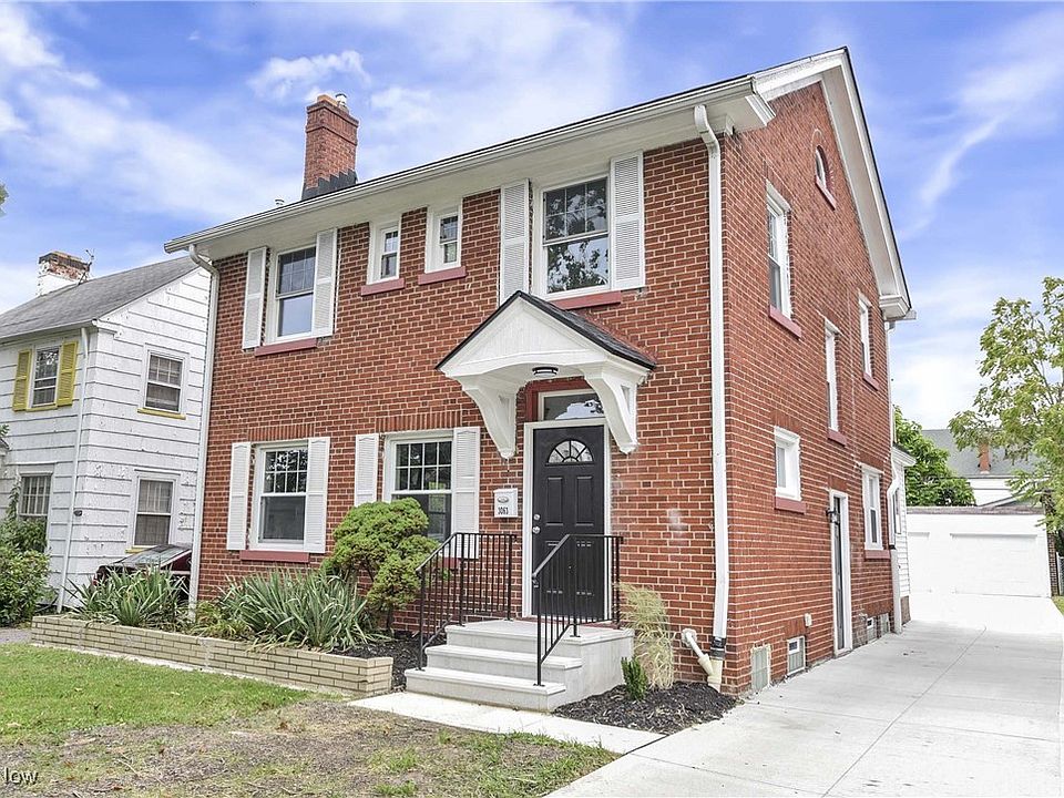 Recently remodeled home with neutral interior and modern updates throughout! The first floor features stylish Luxury Vinyl flooring, spacious living room with decorative fireplace and new flush mount recessed lighting. The formal dining room offers plenty of space for gatherings, with a bonus room at the rear for added flexibility. The kitchen boasts shaker style cabinets, granite countertops, range, built-in microwave, dishwasher, new garbage disposal and additional recessed lighting. A convenient half bath is located just off the kitchen. Light and bright interior with lots of New windows! Upstairs, you will find three bedrooms and an updated full bath that leads to second story balcony. Both bathrooms have been remodeled! Steps lead up to the attic, providing extra storage potential. The unfinished basement with laundry provides extra storage space. Exterior highlights included classic brick construction and a detached 2 car garage. This is a Fannie Mae Homepath Property.