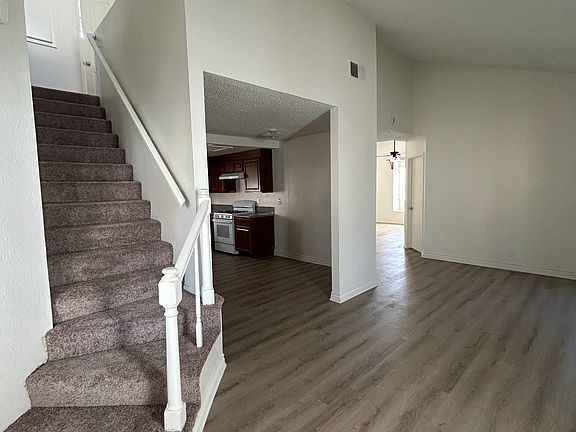 First floor has vinyl plank throughout. One bedroom and bathroom located on the first floor. Second floor offers 2 bedrooms and 2 bathrooms. Close to schools, hospitals and access to 210 and 10 Freeways.