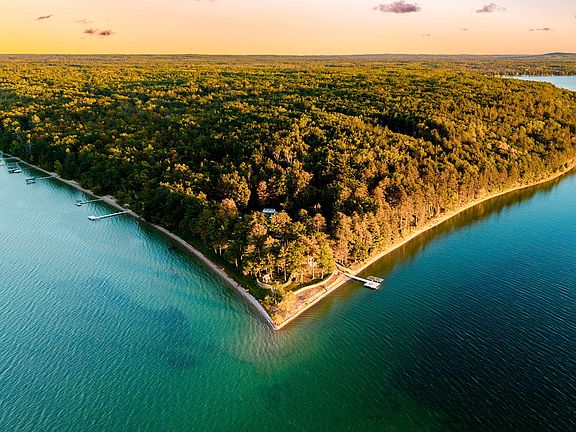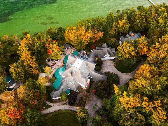 Tucked within 14.1 private wooded acres and surrounded by 1,500+ feet of direct Mullett Lake frontage, Red Pine Point stands among Northern Michigan's most remarkable lakefront estates. The Victorian-inspired main residence offers 15,970 sq. ft. of living space and over 18,000 total finished sq. ft., including in-law and caretaker quarters, multiple garages, and a lakeside gazebo.