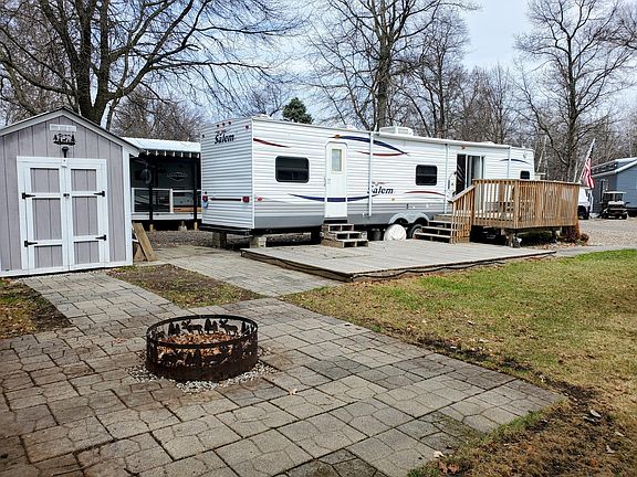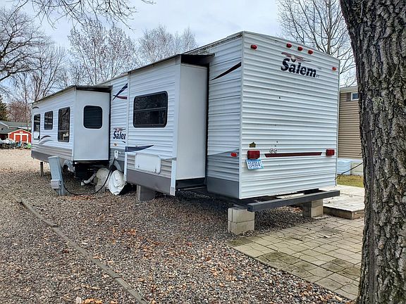 Private level lot with a lawn large enough for yard games, a firepit with firewood, an 8 x 10 shed and a large two-tiered deck. Included in the sale is everything that you see on the property and in the shed. The camper is an impeccable 2008 Salem PT 392 FKDS fully furnished and ready for the season. It is rare to find one this nice, with an incredible amount of storage! Plus there is room for 3 - 4 cars out front. The comfort station is less than a block away and features restrooms, showers, and laundry facilities