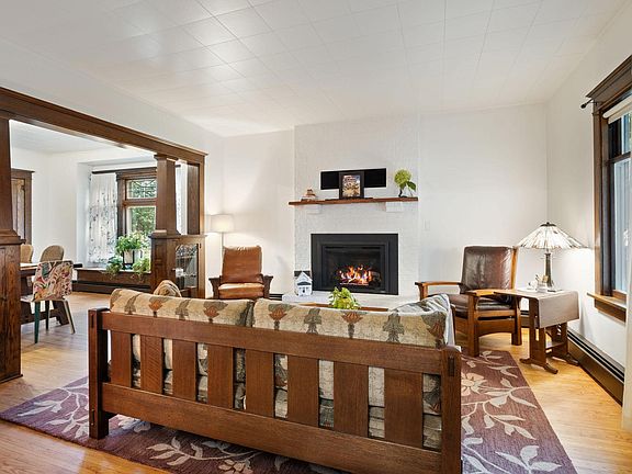 Harmoniously merging modern convenience with historic character, there's so much to love! An open and airy original layout, Handsome Woodwork, Cozy Gas Fireplace, Gorgeous Hardwood Floors, Beautiful Staircase with Stained Glass Windows, The Newly Renovated Kitchen features Sleek Stainless Steel Appliances, Butcher Block Countertops and Stunning Tile Floors, with Ample Storage and Workspaces. Upstairs you'll find 3 Spacious Bedrooms and a Large Family Bath.