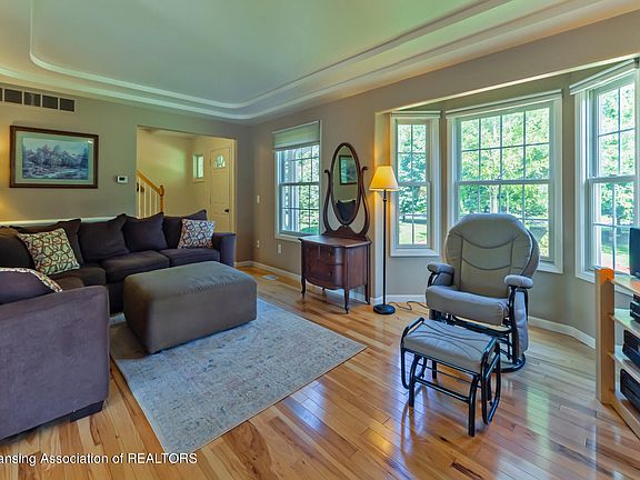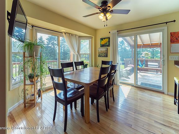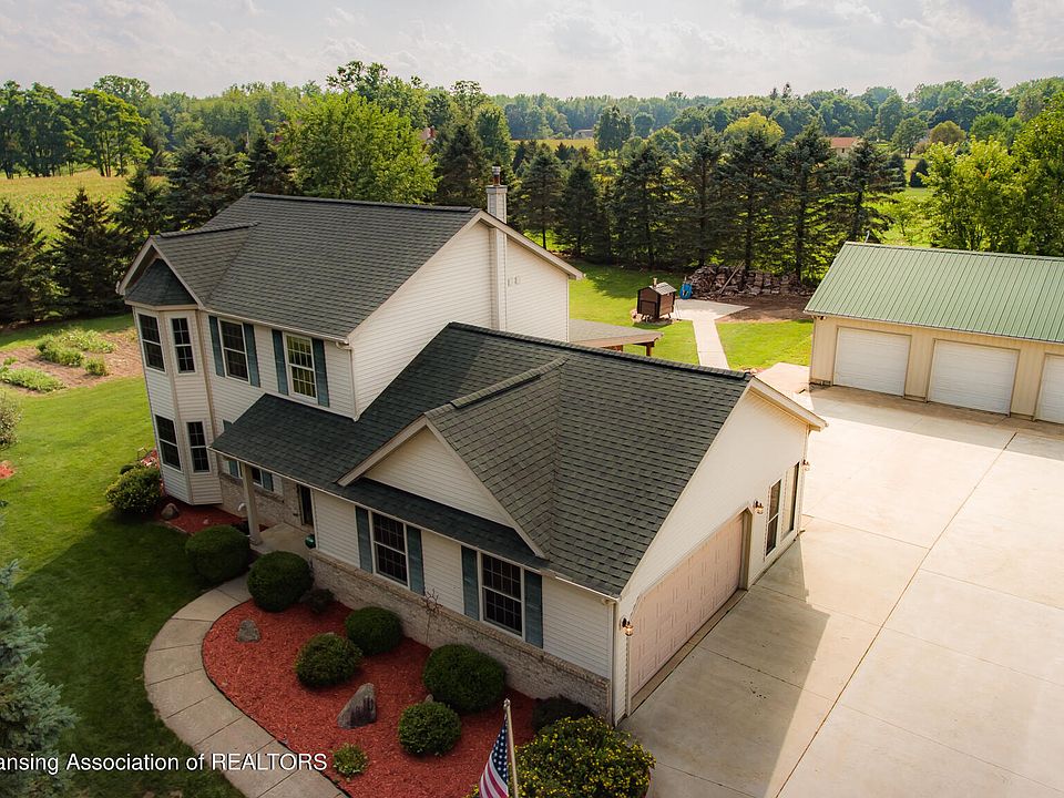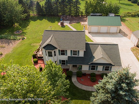 Private Country Oasis, this is country living at its finest. As you enter you will marvel at the beautiful hardwood floors, the open living room with great natural light, the dining room which features 2 sliding doors that lead out the wrap around deck, the open kitchen and the first-floor laundry/mud room are fantastic attributes. Primary bedroom features a large on suite full bathroom, hardwood floors and a slider that leads out a private balcony. A full basement that is just waiting to be finished with a large storage room. Exterior features of this home are breathtaking, a 26 X 18 rear cover deck with surround sound, which leads to a hot tub and a wrap-around side deck. Large pole barn with 3 garage doors and workshop is a must see. The wood boiler is an extremely efficient way to save on those propane costs. Yard is wonderfully landscaped, with a vegetable garden, fruit trees and mature trees. This home has so much to offer it cannot be described in words.