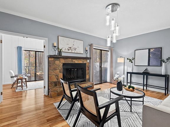 Autumnal beauty abounds in the popular Colony Hill neighborhood. Step inside this move-in ready condo on a chilly day and enjoy the coziness of the sunken living room with working fireplace, built-ins, and warm wood floors. The downstairs floor plan is open and also includes a designated office with French doors that could even be used as a third bedroom. Two sets of sliding glass doors flow seamlessly outdoors onto the private deck. Upstairs you'll find two bedrooms and two full bathrooms. The primary bedroom features a Juliet balcony offering gorgeous wooded views. You won't have to get in the car to access nearby Sandy Creek trail and park! Also conveniently located near Duke and all that both Durham and Chapel Hill have to offer. HOA amenities include community pool and tennis courts. For your convenience, the HOA also covers water, sewer, trash, exterior maintenance and more. HVAC 2021.