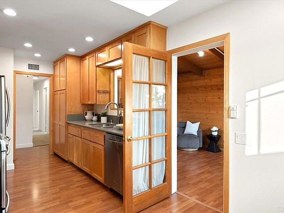 Beautifully updated 4-bedroom single story house with a bonus room or an office for those who work from home. This is a very smart home starting with recessed LED lights and track lighting with dimmer switches to Ring doorbell and flood light cam, Tesla NAC charger, Nest Gen smart smoke and co alarm, Chamberlain video garage door opener, smart thermostat, Noritz tankless water heater and so much more. Light and bright home with 3 skylights and a solar tube. Cozy wood burning fireplace in the living room has a mantel to hanging your holiday stockings. Central Air conditioning and washer and dryer. Kitchen is equipped with stainless steel top of the line appliances include gas range with True Convection oven and French door refrigerator. Plenty of storages spaces inside include built in shelves, cabinets and closets and outside storage shed. Low maintenance private backyard with matured trees is perfect for drinking your morning coffee or sitting with a glass of wine in the evening. 2 car attached garage and 4 driveway parking and ample street parking. Fully paid solar panels. Ideally located in University City's most desirable area, neighboring La Jolla and UCSD, minutes to shopping, restaurants, parks, hiking trails, beaches, freeways, and top-rated schools.