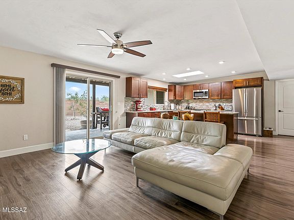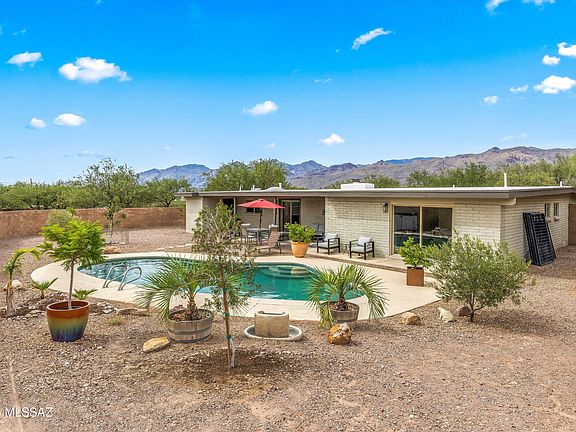Private desert oasis in the coveted Tanque Verde School District! This 4-bedroom home sits on a over 1 acre secluded lot with a fabulous pool, gardens and fruit trees--fig, peach, pomegranate, mulberry, nectarine, and apricot. Inside, a gourmet kitchen with stylish updates anchors a bright, open floor plan. Large windows frame views and fill the home with natural light. Direct access to hiking and biking trails puts the desert right at your doorstep, while shopping, dining, and schools are just minutes away. Close to Agua Caliente Park and Base of Mt Lemmon. A rare blend of privacy, modern updates, and lifestyle convenience! Room for all the toys, horses and outbuildings. No HOA necessary but voluntary available.