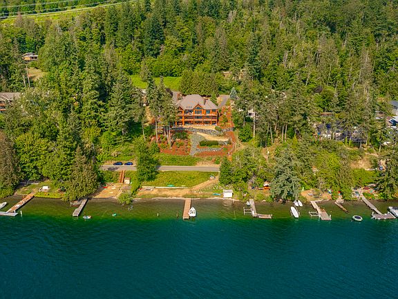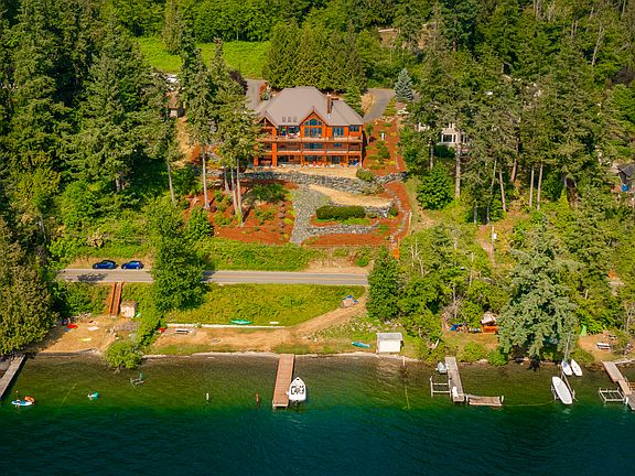 Introducing an eye-catching, NW contemporary style home on the coveted Lake Whatcom. Located on North Shore with west facing views this home has designer finishes, custom millwork, oversized 3-car garage, outdoor decks on each level for entertaining, chefs kitchen, with grand island, bedrooms have a spa-like feel and thoughtful features. The main floor has vaulted ceilings, oversized windows that showcase, gorgeous water views. Lower level, separate mother-in-law with sauna steam shower, wine grotto, media room. Just shy of an acre lot with over 7,000 square-foot home. Rare no bank, 160 feet of level waterfront with oversized dock and charming boat house with power. This is a once in a lifetime chance to own your own dream home on beautiful Lake Whatcom.