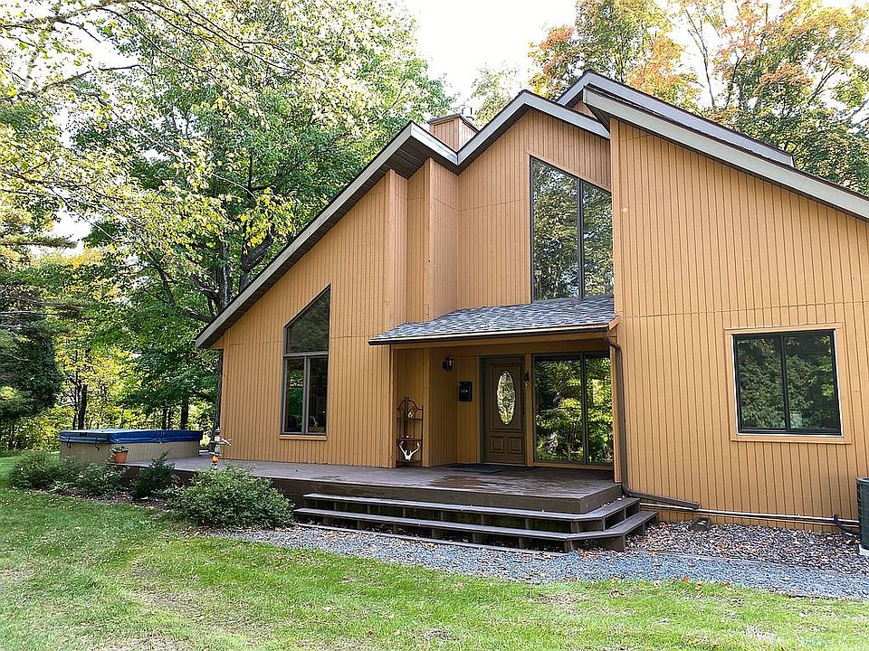 River views, water frontage, open floor plan and lots of recent updates. Take a scenic drive through a canopy of hardwoods and giant white pines to this amazing 3+ BR home with detached guest quarters on 5 acres with 230 feet of frontage on the St Louis River. New hardwood floors and paint throughout, bathrooms updated, walk in tile shower in master suite, new furnace, new hot water heaters and much more. The main level has an open kitchen / dining area featuring oak cabinets and trim, granite counters, center island, and plenty of storage. The living area has dramatic windows with amazing views of the river and surrounding pine and maple forests. Cathedral ceiling, gas fireplace and sliding doors to the large deck and hot tub. Two bedrooms and a full bath complete the main level. Open loft upper level spacious master suite with a large 3/4 bath & walk-in closet. The walkout lower level features a TV or rec room, workshop, laundry, sauna and lots of storage. Outside, there's a deep, 2 stall garage with attached studio guest quarters with full kitchen, bath, and laundry. Walk the winding trails or drive your ATV down to the dock and canoe / kayak rack and firepit.