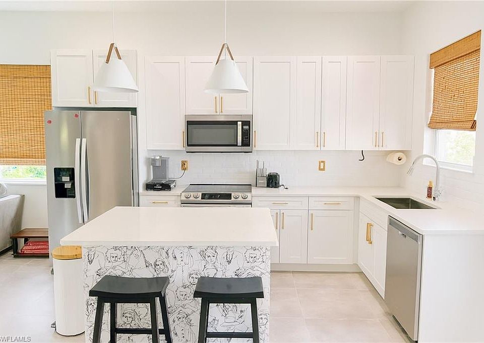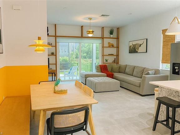 Welcome to your Modern Oasis in the Bayshore Arts District!! Enjoy this rental with no HOA fees, and all utilities are included in the monthly rent! This meticulously updated home offers a perfect blend of style and comfort, featuring 2+ spacious bedrooms and 2.5 bathrooms within 1,330 square feet of thoughtfully designed living space. Step inside to discover volume ceilings and an open floor plan, complemented by custom bamboo window treatments and designer lighting that adds a touch of elegance throughout. The living room boasts a privacy luxury screen slider; seamlessly hidden when not in use to enhance functionality and aesthetics. The kitchen is equipped with a Samsung Bespoke range (2023) and a convenient trash slide-out feature in a lower cabinet. Tile floors, sealed for durability, extend throughout the home, offering a sleek and modern design. Enjoy the comfort and security with impact glass windows and doors, with added benefit of professionally tinting to block UV and reduce heat - without sacrificing natural light. Extra attic insulation installed in 2020 to ensure energy efficiency year-round. The master bedroom is a retreat, featuring crown molding and custom wood closets. The office and second bedroom also offer custom wood closet solutions, providing ample storage and custom barn doors for space efficiency. The screened-in lanai invites you to relax and enjoy the private outdoor space, enhanced by OtO lawn irrigation units and lush landscaping. Clusia trees are strategically planted to provide a natural privacy feature, growing over eight feet tall in the not-too-distant future. This home is not only stylish but also practical, with a washer and dryer conveniently located in the unit. Additional features include upgraded modern door hardware, luxury wallpaper, and custom built-in bookshelves on both levels. Experience the perfect blend of modern living and privacy in this single-family home. Schedule your private tour today and envision the lifestyle that awaits you in the Bayshore Arts District.