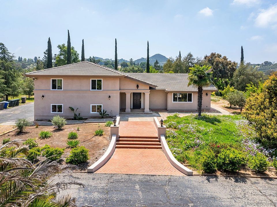 Beautiful home with estate potential. Property is quiet and private, has 3 gates, circular driveway, many fruit and citrus trees. All rooms and bedrooms are large. Upstairs loft could easily become an additional bedroom. The only bedroom downstairs has direct access to outside, in suite bathroom plus additional 13x13 kitchen area. There is a laundry room on the main floor and there is additional laundry in the garage. Home was remodeled in 2020. Roof was installed in 2016.