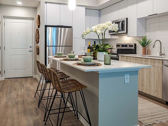 - Exterior features: 9 Ft Ceilings, Availability 24 Hours, Barbecue, Barn Doors in Select Units, Conference Room, Contemporary Tubs & Showers, Designer Inspired Interiors, Dog Wash, Entertainment Kitchen & Coffee Bar, Fire Pit, Kitchen Island with Pendant Lighting, Private & Open Workspaces, Private Screened Patios or Balconies, Quartz Countertops, Stainless Steel Appliances, TV Lounge, Two Cabinet Schemes, USB Outlets in Kitchen & Bedrooms