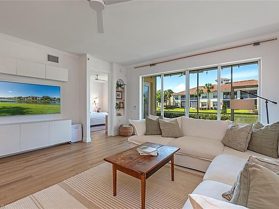 Beautifully updated carriage home situated with light and bright southern lakefront exposure in an ideal location within the highly coveted gated community of Bridgewater Bay. This first floor 2 + den, 2 bath unit offers a generous and open layout including just shy of 1,900 sq/ft overall, a single car attached garage, and a screened in porch offering long lake vistas. Residence has been lovingly maintained and is just a short walk away from the incredible community amenities. Some of the updates include new LVP flooring, fresh paint, shiplap and trim details, new appliances, closet built-ins, bath vanities, and a high grade epoxy finish in the garage. Bridgewater Bay is situated in the heart of Naples offering quick access to a plethora of amenities. The community offers a resort style pool, lap pool, fitness center with his/hers locker rooms and saunas, 2 pickle ball courts, 2 har tru tennis courts, Boccee, and kids playground area.