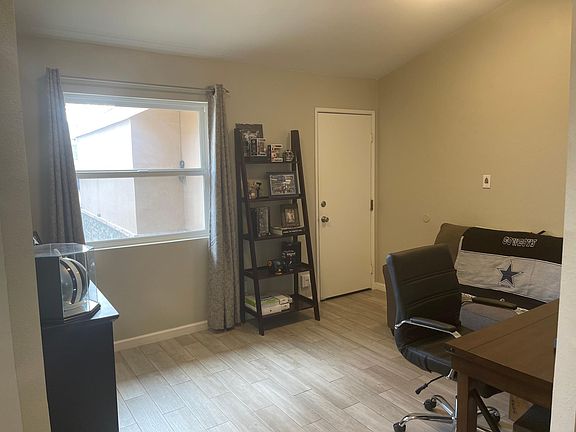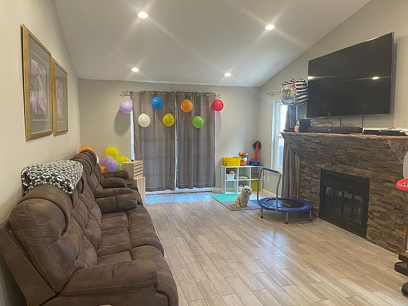 Upgraded home with brand new exterior paint and stonework. New flooring, recess lighting, paint and windows throughout 3 bedrooms, 2 bathrooms and an office (which can be used as bedroom 4). Room built into garage, insulated with wall AC/Heat. Currently being used as gym but may be used as storage or additional room. Beautiful electric fireplace in open concept living area. Guest bathroom has been completely remodeled. Lovely backyard with storage shed, barbecue pit, built in seating, grass area and patio. All surrounded by new block walls. All utilities paid by renter. Dogs and cats welcome. First and last months rent up front. When applying please provide 3 months proof of income (paystubs).