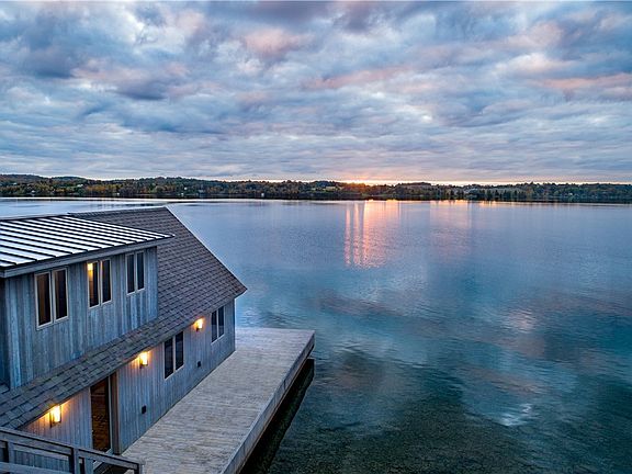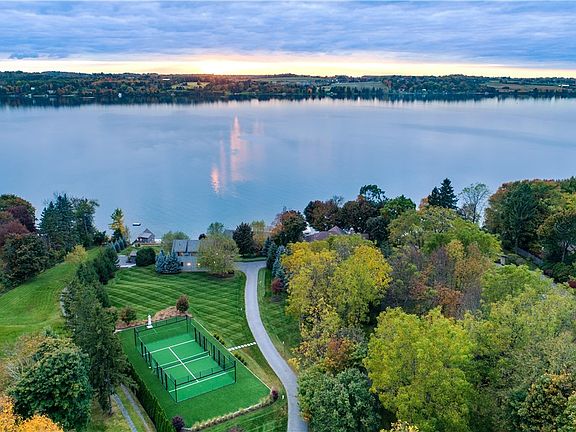 Experience the coalescence of water and land in this breathtaking Skaneateles Lake compound featuring a luxurious primary residence, spacious carriage house and idyllic lakeside guest house, perfect for a private home office. Each features design details influenced by a modern minimalist aesthetic yet is seamlessly integrated into the landscape of one of the country’s most pristine lakes. Here you’ll live your way, with interior and exterior space that morphs and changes to accommodate your changing needs and tastes: from intimate gatherings of friends and family to full-scale events or moments of quiet contemplation, much-needed respite and relaxation. Walls of glass open onto expansive decks, allowing you to make the 185 feet of private shoreline the backdrop to your most cherished memories and your most glittering occasions. Stroll winding stone paths and walkways, expansive decks & docks and return to all that is essential while indulging the senses in ultimate luxury amenities including a private Padel tennis court, outdoor spa, & lakeside fitness studio. Located only 2.5 miles from the heart of Skaneateles Village on the coveted east side, yet a world away from the everyday.