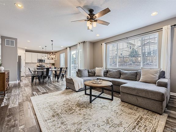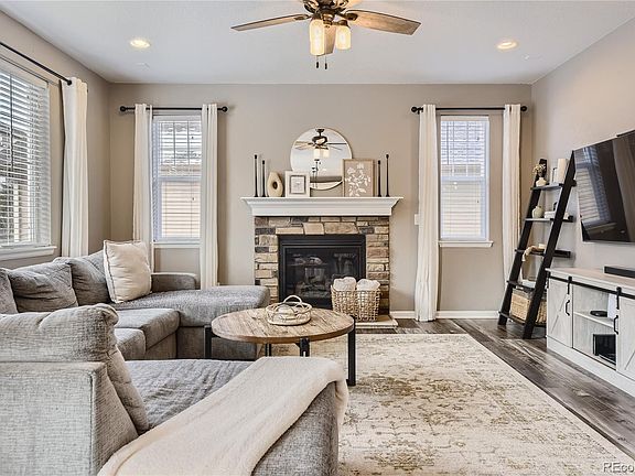 Nestled on one of the most sought-after streets in The Meadows, this picturesque 4-bed, 4-bath + a private office (with french doors!) is one of the newest and most upgraded models you will find in the Meadows. The property boasts over 3,000 finished square feet, gorgeous shaker cabinets with a large pantry, quartz countertops, a very spacious primary suite with one of the biggest walk-in closets you will ever see, and a MASSIVE custom back patio with a hot tub. Functional layout is emphasized with open-concept living, 8-foot main floor doorways, a beautiful upstairs laundry room & loft and a permitted finished basement with TONS of storage. Nestle up in front of the cozy living room fireplace, take a dip in the new back yard hot-tub after a long day or watch the BEST 4th of July fireworks show right from the convenience of your own driveway. A neighborhood built on emphasizing "community" features incredibly close proximity to parks, pools (The Grange!) and the many of the most coveted schools in all of Castle Rock. With incredible curb appeal, top-notch landscaping and a great 2-car garage complete with a tesla charger and great built-in storage, this is THE ONE! Just minutes to downtown Castle Rock, shopping plazas, the Castle Rock Outlets and easy highway access. Brokers - please see supplemental information for your buyers. ***Seller(s) and Seller's Preferred Lender are open to providing credits to buydown the Buyers Interest Rate***