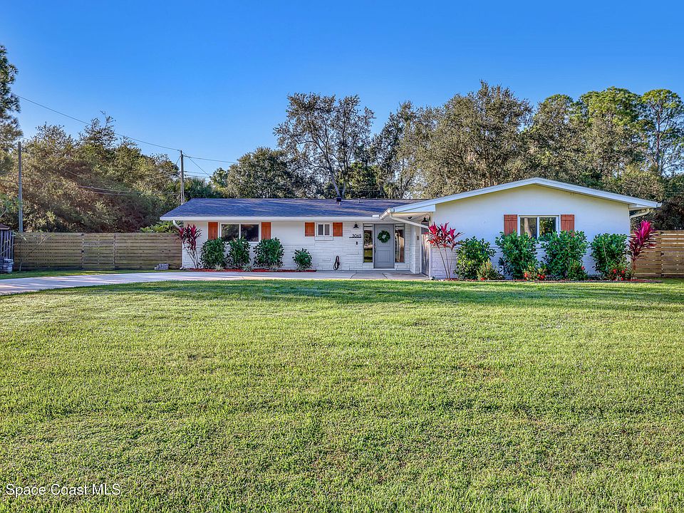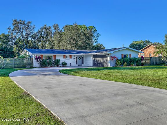 Gorgeous completely remodeled 4 bedroom home on almost 1/2 acre! Amazing West Melbourne location close to all conveniences but feels like you're out in the country. Plenty of room for pool, extra garages, workshops, or boat/RV parking. New island kitchen w/large breakfast bar, white shaker cabinets w/crown, black stainless appliances, & granite countertops. All new plumbing(no cast iron). All new electrical. New windows. New roof & newer AC. Water treatment system. Quality wood laminate floors throughout. Updated bathrooms w/nice tile work & granite vanity. Huge covered porch w/brick pavers & wood ceiling, overlooking large privacy fenced back yard. Also has shed & fire pit. Great curb appeal w/side entry garage. This home has so much to offer in the price range, and in the best location. Not many homes like this come available. Don't miss this opportunity.